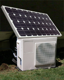 100% Solar Powered air conditioner using large amount of PV moudles is more expensive than normal one, the optimized way is attainable by connecting your normal A/C to solar power station (If you have),if you have not,the 100% solar A/C is customized.